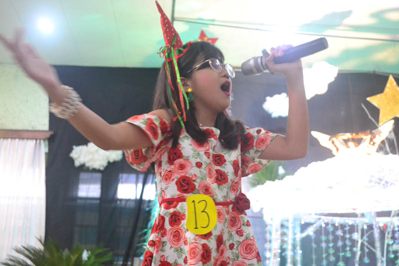 Tepat 13 anak menjadi peserta lomba menyanyi. Secara bergantian dari peserta pertama hingga terakhir menyanyikan lagu yang sudah mereka pilih. Masing-masing peserta menyanyikan 2 lagu, 1 lagu wajib pilihan dan 1 lagu bebas. Sesekali terdengar pujian dan lontaran semangat dari para orang tua peserta. Berikut ini foto dari para peserta yang tampil.
