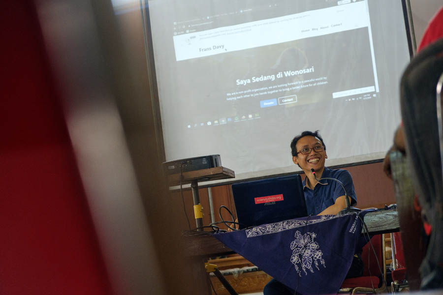 Pemateri workshop, adalah Frans untuk pembuatan Web, Ery untuk materi fotografi, dan Sunu untuk materi videografi.