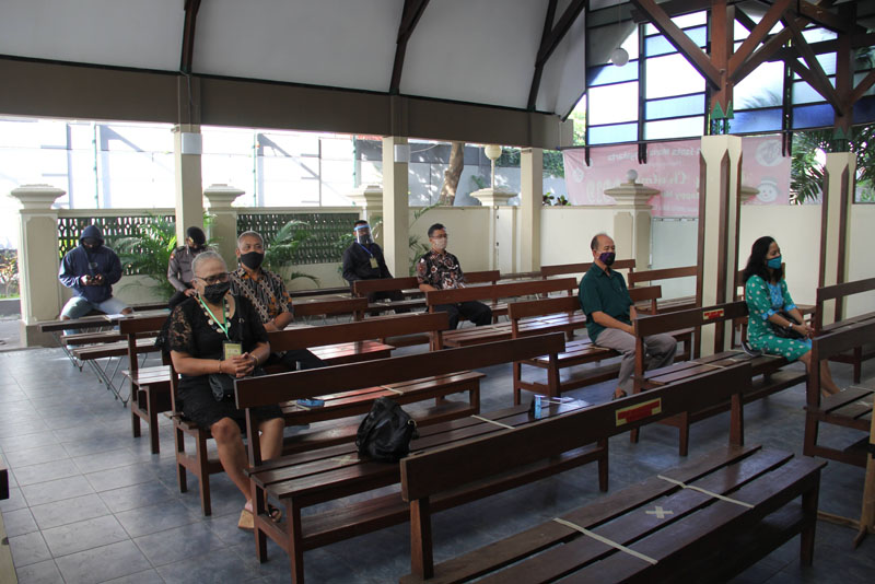 Dengan menerapkan prosedur kesehatan yang benar, dimulai dari sejak umat datang wajib menunjukkan kartu pass, dilanjutkan dengan pengecekan suhu tubuh menggunakan thermogun, cuci tangan menggunakan sabun dengan tetap menjaga jarak selama perayaan ekaristi, maka syukur kepada Tuhan ekaristi dapat berjalan dengan baik.