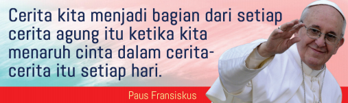 Cerita kita menjadi bagian dari setiap cerita agung. Ketika membaca Kitab Suci, kisah orang-orang kudus dan juga cerita-cerita yang mampu membaca jiwa manusia dan mengungkapkan keindahannya, Roh Kudus memiliki kebebasan menulis di dalam hati kita dan membarui diri kita, serta mengingatkan tentang siapa diri kita di mata Allah. Ketika kita mengingat cinta yang telah menciptakan dan menyelamatkan, ketika kita menaruh cinta ke dalam cerita-cerita kita setiap hari, dan ketika kita menenun jalan cerita sehari-hari kita dengan belas kasihan, maka kita akan berpindah ke halaman berikutnya.
