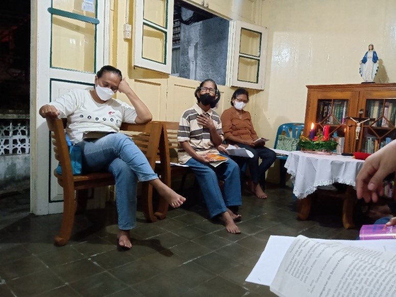 Kegiatan pendalaman iman Minggu Adven II dilaksanakan oleh umat di Lingkungan St.Ignatius Cokrokusuman pada Rabu, 7 Desember 2022 pukul 19.00 WIB di kediaman Pak Agus. Pendalaman Iman Minggu Adven II ini mengambil tema “Berjalan Bersama Membangun Pertobatan” sesuai dengan Buku Panduan Adven Lingkungan KAS. Kegiatan ini dihadiri oleh 18 umat lingkungan Ignatius Cokrokusuman, 2 orang mahasiswa/i PENDIKKAT USD, dan dipandu oleh Pak Lintang selaku calon prodiakon lingkungan.