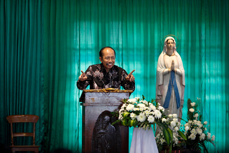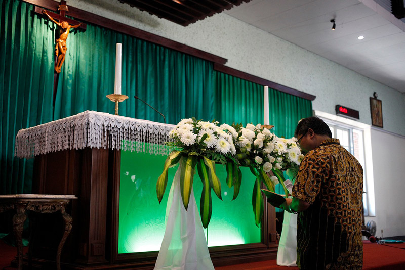 Acara yang direncanakan mulai jam 11 siang ini baru dimulai pada jam 1 siang dikarenakan Romo Vikaris Episkopalis (Vikep) Adrianus Maradiyo Pr sebagai saksi sebelumnya menghadiri acara Misa 40 tahun PKK KAS di Sleman City Hall.