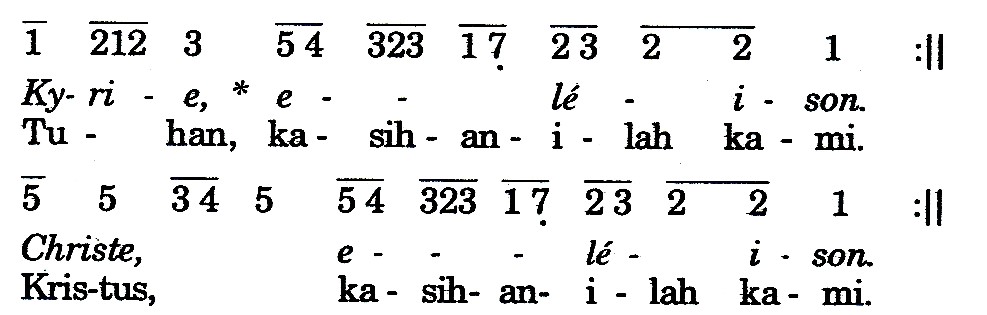I+U Saya mengaku kepada Allah yang Mahakuasa dan kepada Saudara sekalian, bahwa saya telah berdosa dengan pikiran dan perkataan, dengan perbuatan dan kelalaian. Saya berdosa, saya berdosa, saya sungguh berdosa. Oleh sebab itu, saya mohon kepada Santa Perawan Maria, kepada para Malaikat dan Orang Kudus dan kepada Saudara sekalian, supaya mendoakan saya pada Allah Tuhan kita.
