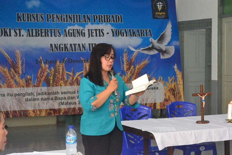 Pembacaan sabda Tuhan, renungan dan kesaksian dari ibu Brigitta Sugianti merupakan agenda selanjutnya. Ibu Sugianti memberi kesaksian bahwa hidup di dalam Kristus selalu mendapatkan pencerahan. Betapa ia sangat bergantung kepada Tuhan Yesus Kristus dalam seluruh hidupnya, dilanjutkan sambutan dari perwakilan WKRI Ranting Jetis.
